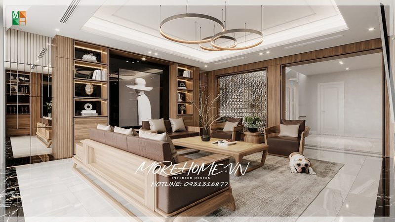 Phòng khách được trang trí sắp xếp nội thất khoa học đem tới sự thuận lợi trong quá trình sinh hoạt hàng ngày và thẩm mỹ cao.